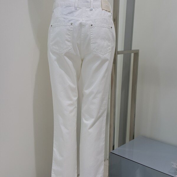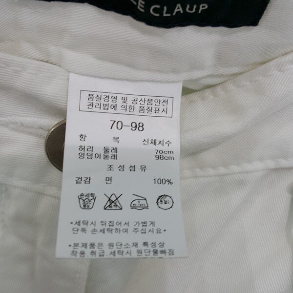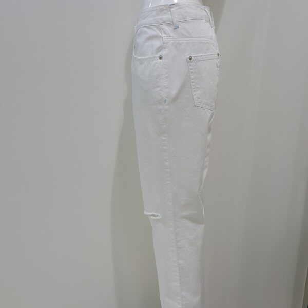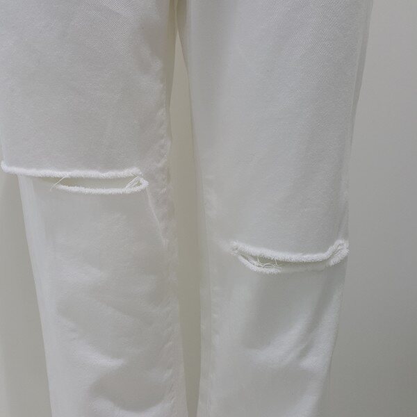 화사한 화이트 바지입니다. 스키니에 비해 신축성이 많지 않아 사이즈 여유 있습니다.