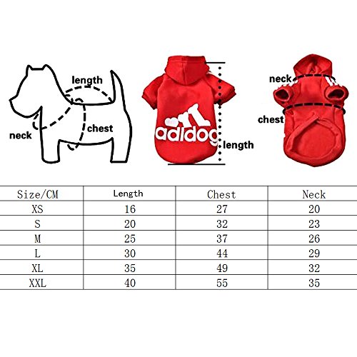 Studio : Eastlion Publisher : Eastlion Binding : Misc. Product Description Basic Information: Name:Adidog Sweater Hoodie Condition:100% brand new and high quality Material:100% Cotton Colour:Red,Black,Pink,Dark Blue,Light blue,Yellow,Grey Size: XS(Neck:20cm, Chest:27cm, Length:16cm) S(Neck:23cm, Chest:32cm, Length:20cm) M(Neck:26cm, Chest:37cm, Length:25cm) L(Neck:29cm, Chest:44cm, Length:30cm) XL(Neck:32cm, Chest:49cm, Length:35cm) XXL(Neck:35cm, Chest:55cm,Length:40cm) We have fine workmanship and exquisite design. Keep the dog warm in cold weather with style and a sense of humor,makes your pet looks lovely and gentle, fashionable and different. Adidog Sweater Hoodie is a practical everyday jacket for cold weather Package Include : 1 x Pet Adidog Cloth 0