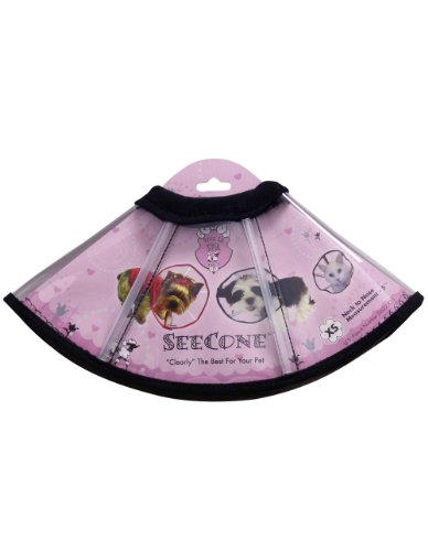 The Viva La Spa SeeCone is a soft and pliable way to keep your pet from aggravating a wound or injury. It keeps them from chewing stitches or scratching hot spots. It breaks the lick-bite, itch-scratch cycle without the harsh restraint – while providing full, clear vision. It’s easy to position the cone the traditional way, around the face, OR “backward” around the upper body. Test it both ways to see which one works best for your pet’s situation. Veterinarian tested, approved and preferred. For maximum sizing efficiency, each SeeCone has both a drawstring around the neck and a toggle to hold it firmly in place. Choose a collar slightly longer than the measurement from the neck to the nose of your dog or cat. Extra Small neck to nose measurement is five inches; Small neck to nose measurement is six inches; Medium neck to nose measurement is eight inches. Available in Pink and Black. Because we love all animals, our products are cruelty free.Feature