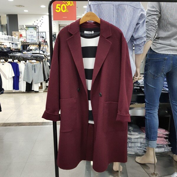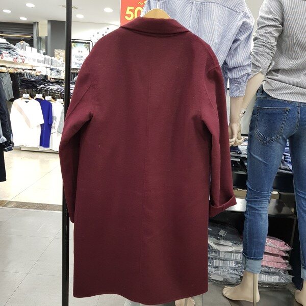 역시즌 상품으로 들어온 여성 코트입니다~베이직한 느낌의 깔끔하고 핏이 편한 모직 코트 입니다~원단이 두껍지 않고 가벼워서 착용감이 아주 가볍고포근 합니다~간절기 부터 착용이 가능한 제품입니다~간절기에는 인어를 얇게 입기 착용하시고겨울에는 후드티,터들넥 폴라티등입으시고,코트를 입으시면 될거 같애요~핸드메이드 포근한 모직 코트!!컬러는 와인이구요사이즈는85,90