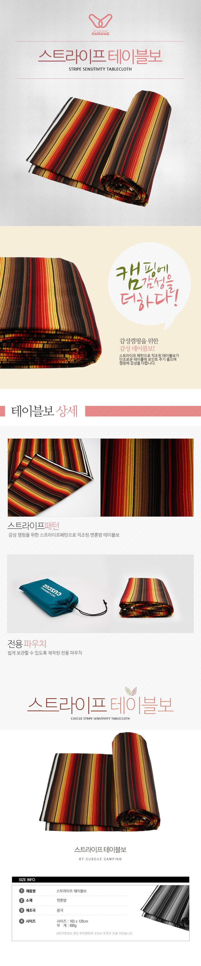 Cuscus striped tablecloth camping emotional pattern