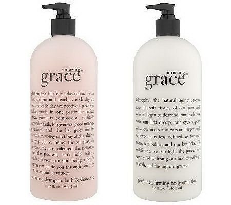 - Feature : Philosophy Amazing Grace Duo Super-Size Fragrance Shower Gel & Body Lotion / Brand New in Sealed Bottles with Pumps / 2 x 32 oz Bottle / Priority Mail Shipping