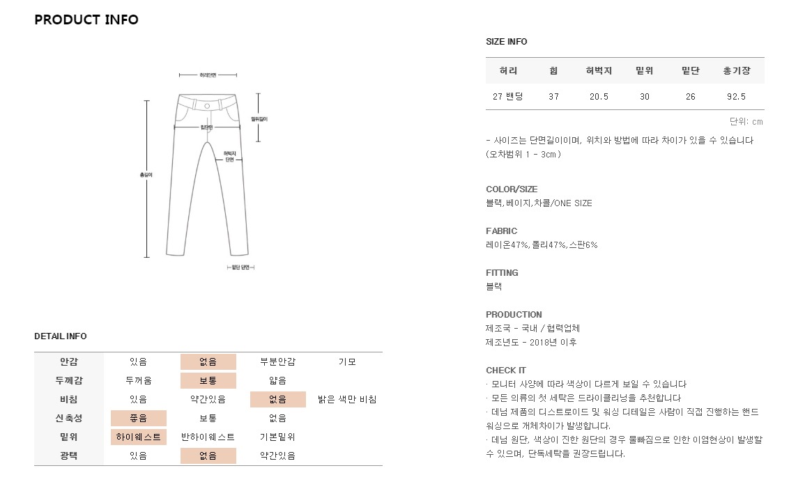 하이웨스트 스타일로 제작되어 롱한 레그라인 연출해드리구요