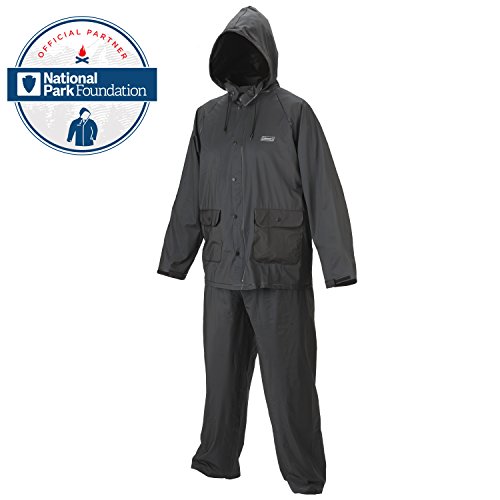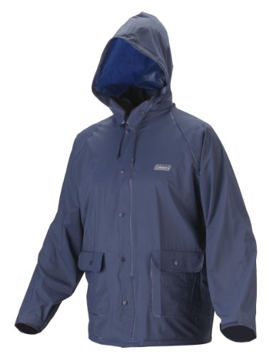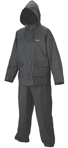 ReleaseDate : 2010-01-01 Studio : COLEMAN Publisher : COLEMAN Binding : Sports Product Description Keep yourself reliably dry and protected from the elements with the Coleman 20mm PVC Rain Suit. Constructed of durable, waterproof 20mm PVC, the Rain Suit includes a rain jacket and pants. The jacket features a stow-away drawstring-adjustable hood, snap-adjustable cuffs, and a storm flap over the center front zipper -- all to keep you dry and the moisture out. There are 2 lower pockets for convenience. The pants have an elasticized waist and snap-adjustable leg openings for a good fit. The Rain Suit stores compactly in the included carry bag. 0