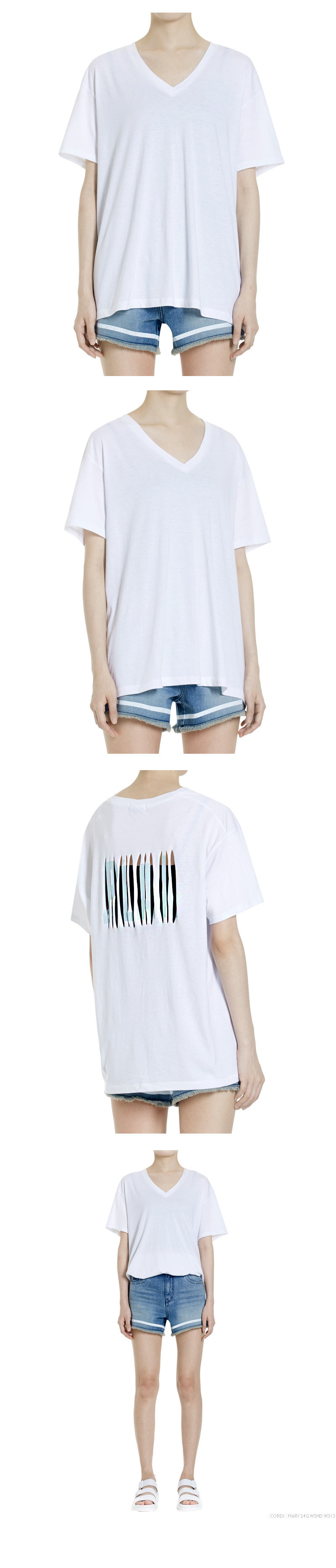 | - V넥 루즈핏 반팔티셔츠 - 등판의 프린트와 레이져 커팅 디테일 - COTTON 60% MODAL 40% | |