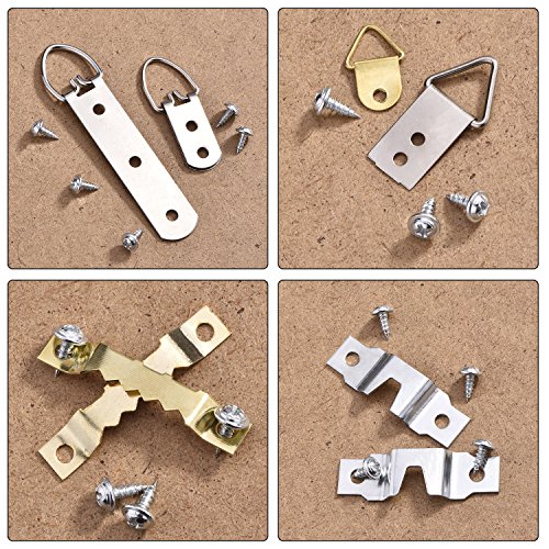 - Picture hangers assortment kit: includes 7 models of picture hangers, each model 4 pieces; With 40 pieces supplementary screws, totally 68 pieces per kit