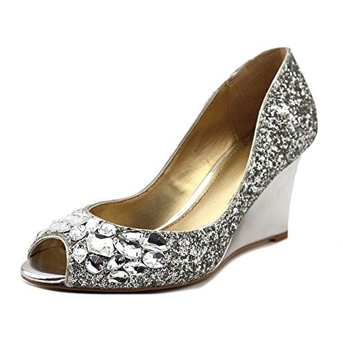 (Badgley Mischka)/Women's/Pumps/DIRECT FROM USA/Badgley Mischka Zenia Women Open Toe Synthetic Silver Wedge Heel