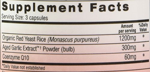-. Feature : Contains 1200mg of Organic Red Yeast Rice per serving / 100% organically grown, GMO-free, non-irradiated Red Yeast Rice / 100% organically grown garlic bulbs / Take as part of a healthy and active lifestyle along with a healthy diet and proper rest