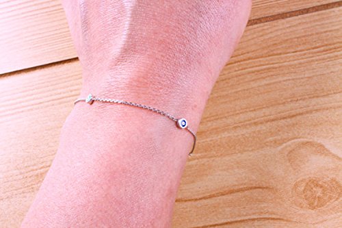 -. Title : Evil eye, Evil eye bracelet with mine,Sterling silver, protection, tiny bracelet, dainty, simple, gift for her, valentines