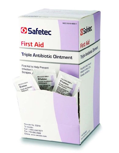 The skins natural healing process can be thrown off by many things such as dirt, dry/damp conditions, or bacteria all preventing the promotion of skin healing and regeneration causing infection and scaring. Prevent this from happening with Triple Antibiotic Ointment. Featuring individually wrapped gram packers, Safetec's Triple Antibiotic Ointment aid in the healing of minor cuts, scrapes, and burns while working to prevent infection and scaring. Great for any age or skin type, Triple Antibiotic Ointment packets are a convenient and accessible way to care for minor injury needs.Feature