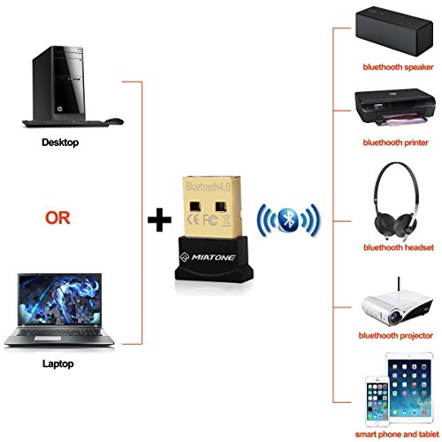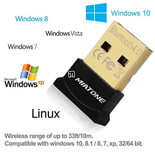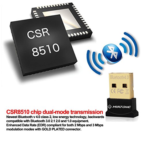 MIATONE® Wireless Bluetooth CSR 4.0 USB Adapter Dongle for PC with Windows 10 8 7 Vista XP 32/64 Raspberry Pi Linux Black