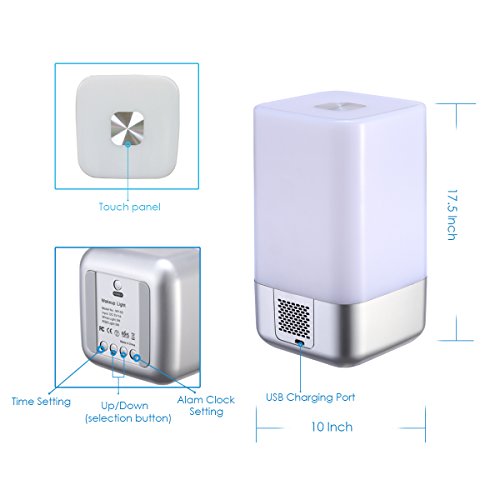 AMIR Wake-Up Light Beside Lamp Alarm Clock with Sunrise Simulation, 5 Natural Sounds, Rechargeable, Touch Sensor Multicolor Dimmable Night Light, Simple Design and Healthy Style (Non-Plug in)