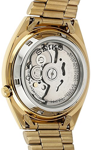 From the master craftsmen at Seiko, the Seiko Men's SNXL72 Seiko 5 Automatic Gold-Tone Stainless Steel Bracelet Watch is a cutting-edge timepiece with a masculine appeal. Featuring a gold analog dial and a gold-tone stainless steel band, this watch is packed with style and would be a great addition to your watch collection.