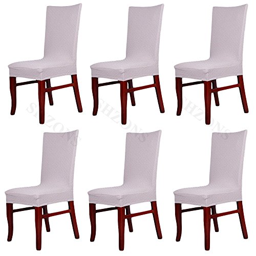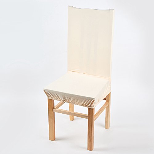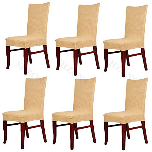 Moldiy Super Fit Polyester Stretch Removable Washable Jacquard Dining Chair Slipcovers Seat Protector Covers Non Fade(Pack of 6,Beige)