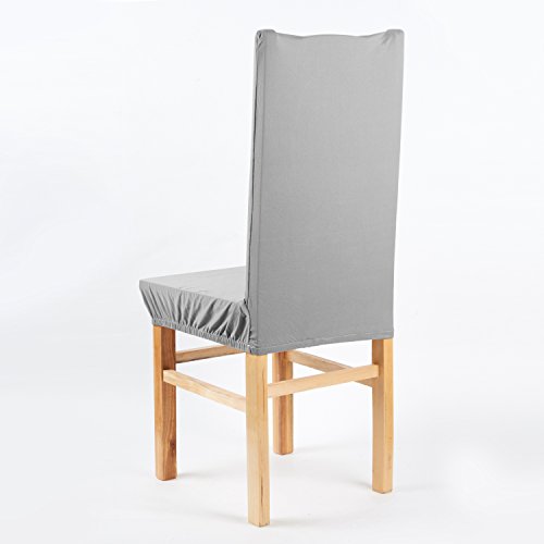 Moldiy Super Fit Polyester Stretch Removable Washable Jacquard Dining Chair Slipcovers Seat Protector Covers Non Fade(Pack of 6,Silver Grey)