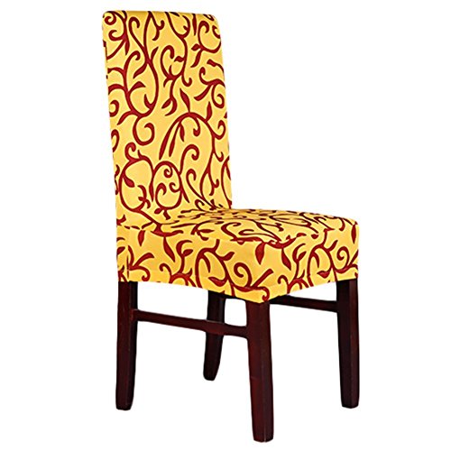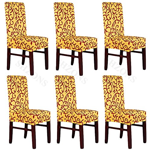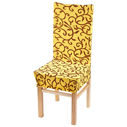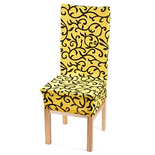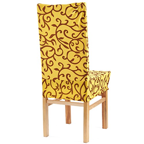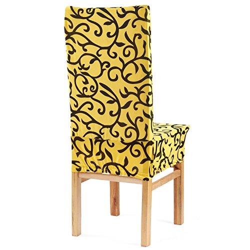 Moldiy Super Fit Polyester Stretch Removable Washable Jacquard Dining Chair Slipcovers Seat Protector Covers Non Fade(Pack of 6,Yellow and Black)