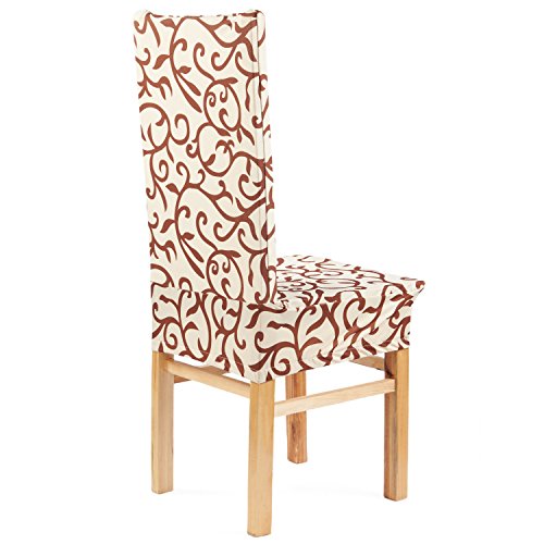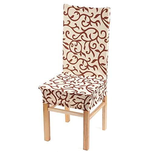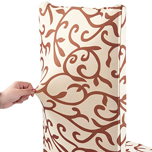 Moldiy Super Fit Polyester Stretch Removable Washable Jacquard Dining Chair Slipcovers Seat Protector Covers Non Fade(Pack of 6,Champagne and Coffee)
