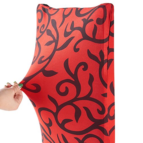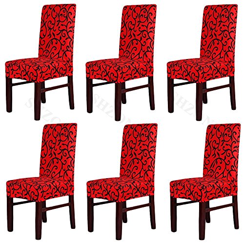 Moldiy Super Fit Polyester Stretch Removable Washable Jacquard Dining Chair Slipcovers Seat Protector Covers Non Fade(Pack of 6,Red and Black)