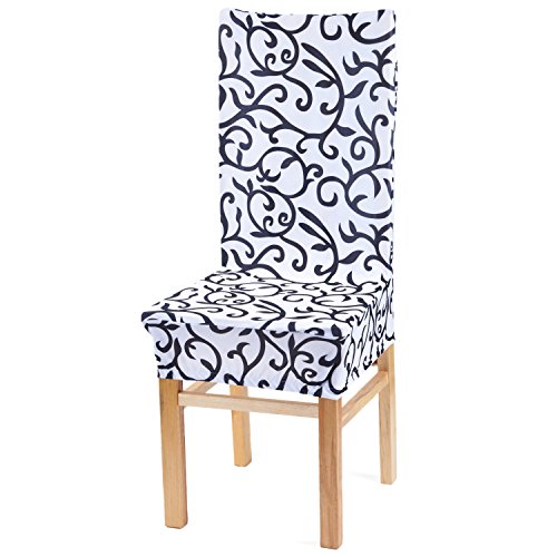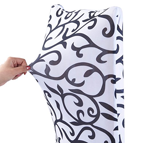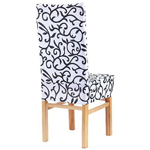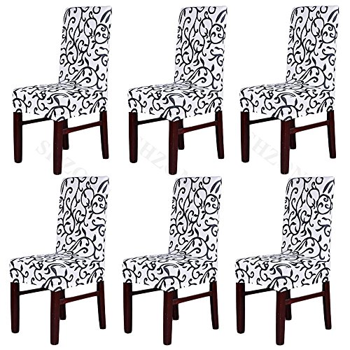 Moldiy Super Fit Polyester Stretch Removable Washable Jacquard Dining Chair Slipcovers Seat Protector Covers Non Fade(Pack of 6,White and Black)