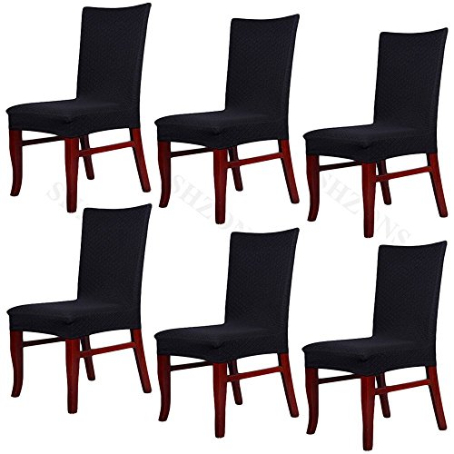 Moldiy Super Fit Polyester Stretch Removable Washable Jacquard Dining Chair Slipcovers Seat Protector Covers Non Fade(Pack of 6,Black)
