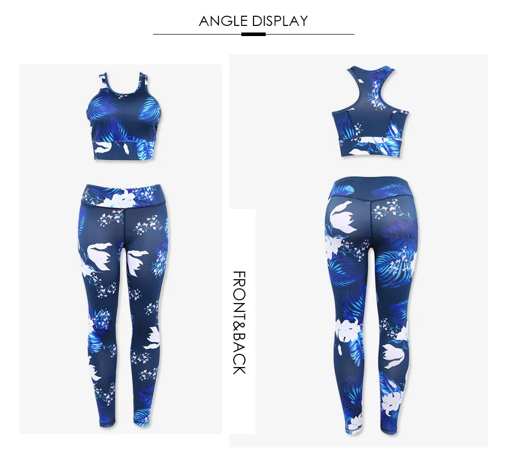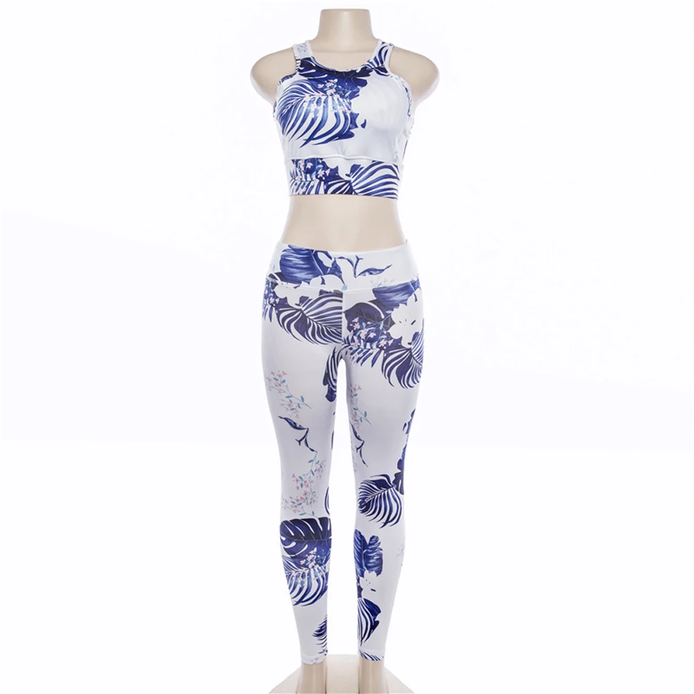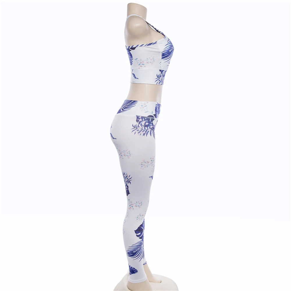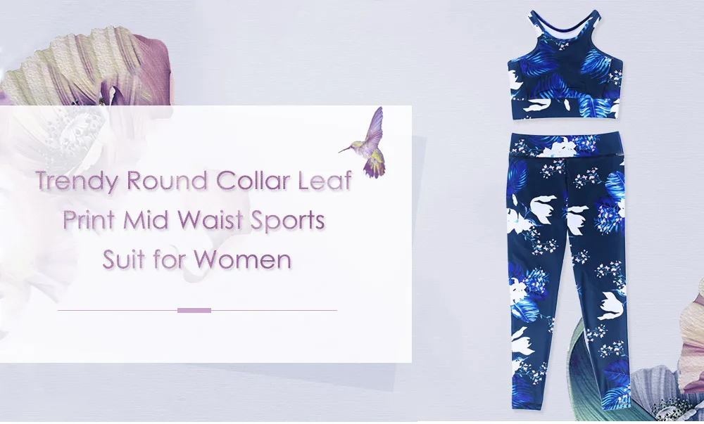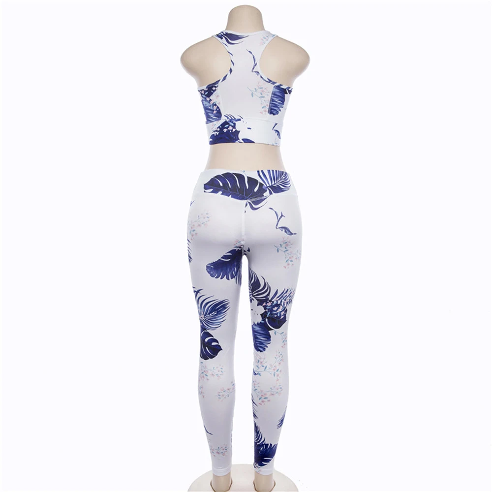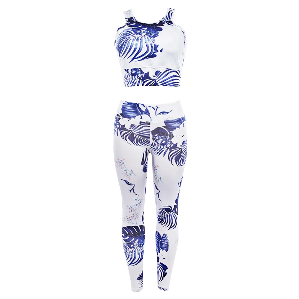 Style:Leaf Print Sport Suit Female Gym Jogging Sport Wear