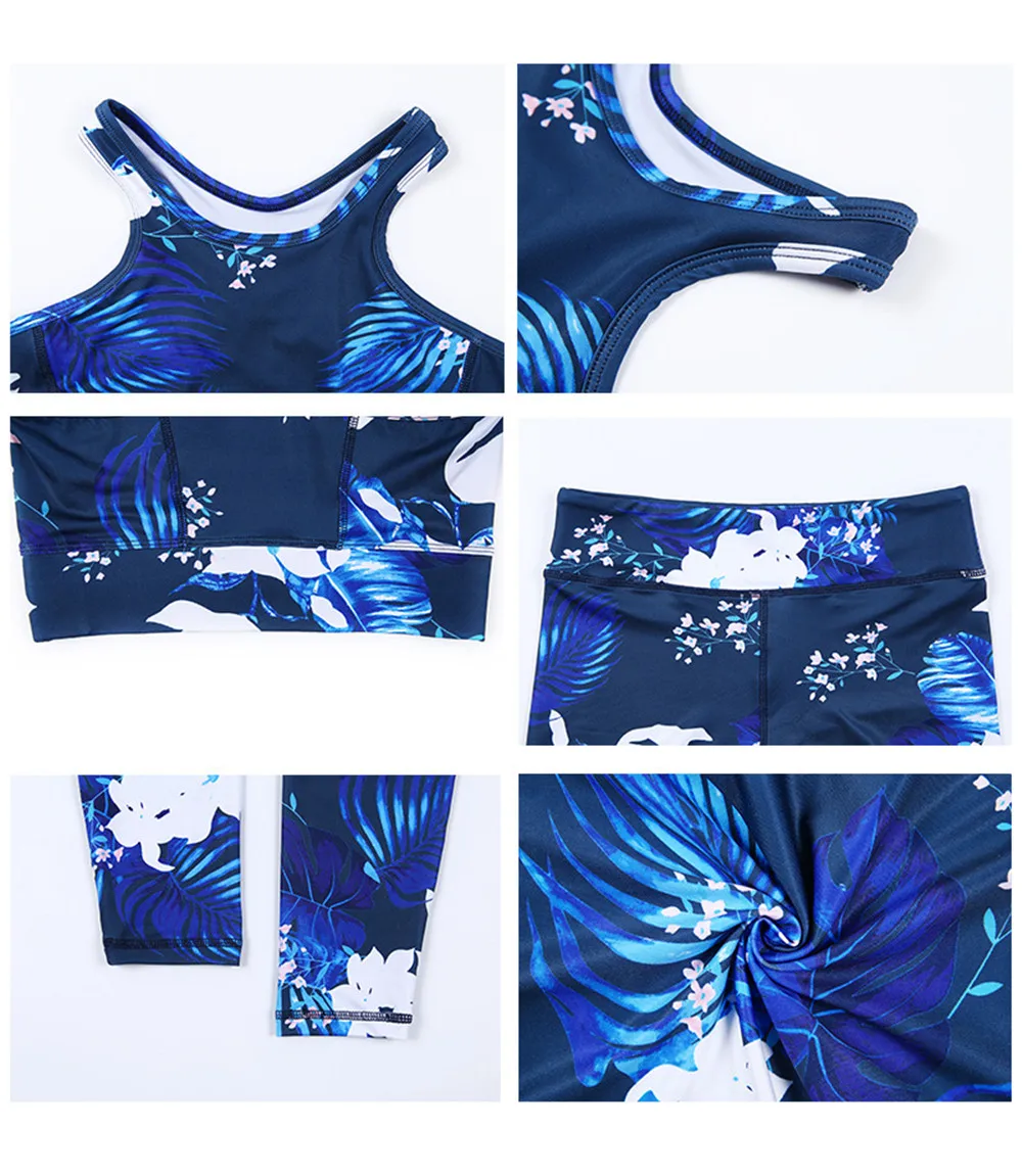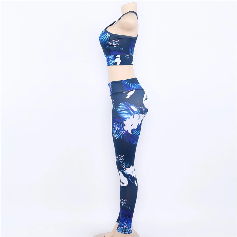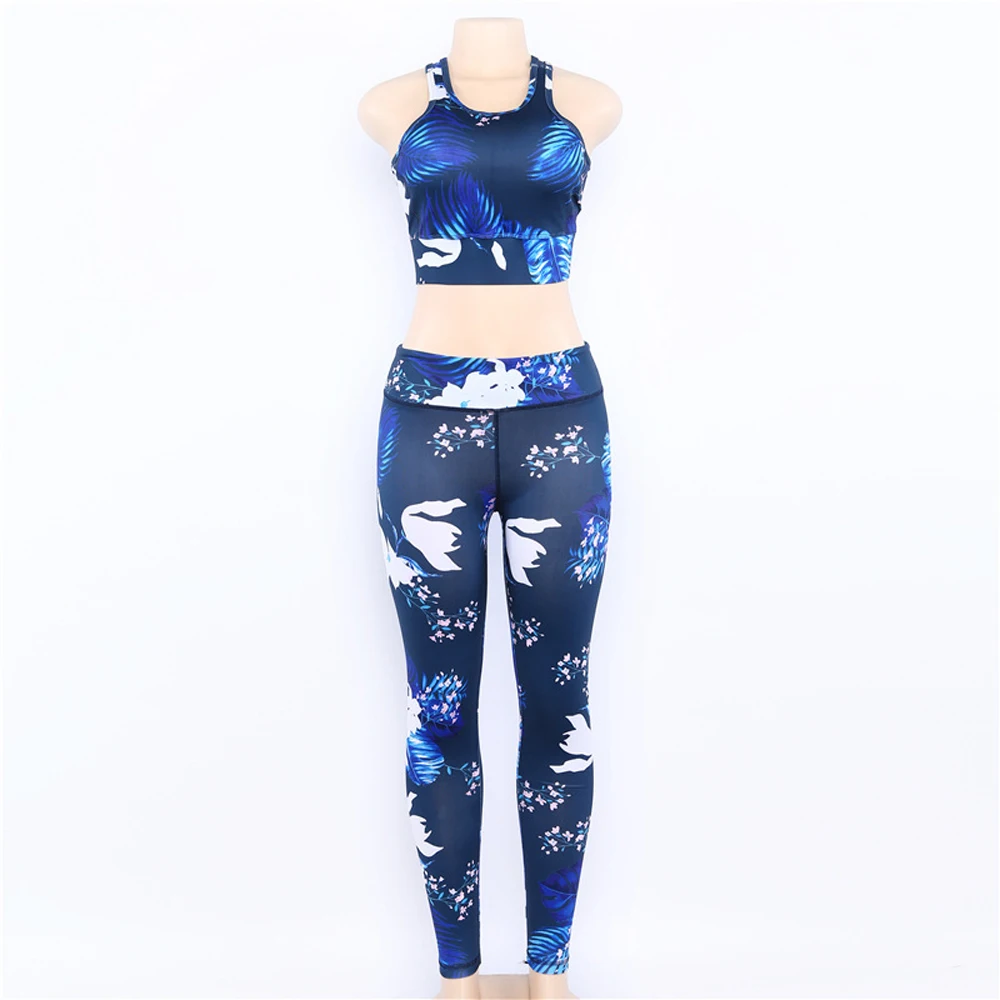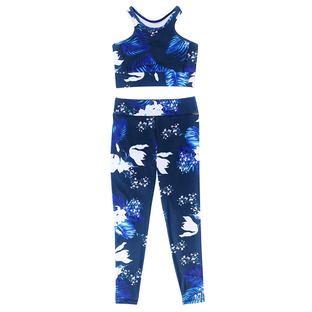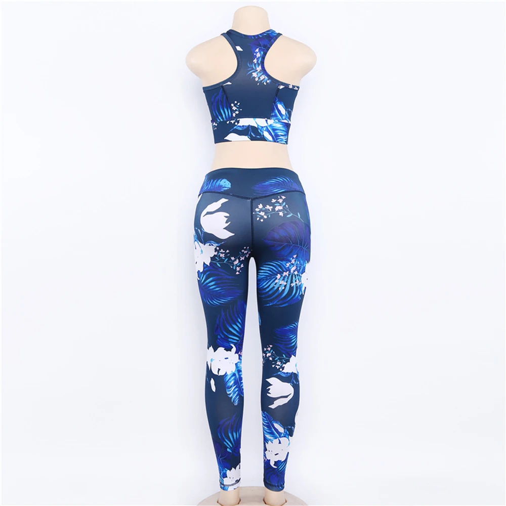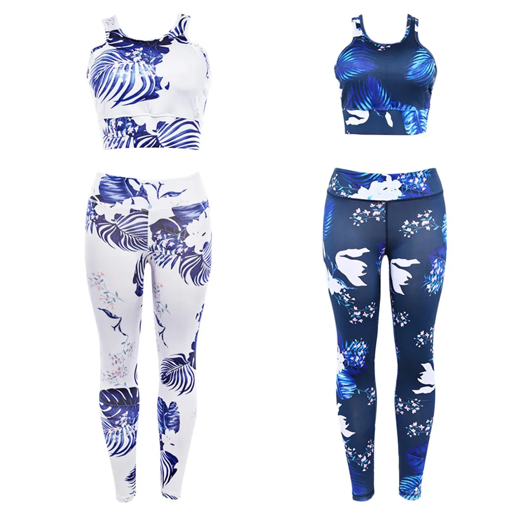 Style:Leaf Print Sport Suit Female Gym Jogging Sport Wear