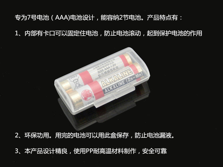 专为7号电池(AAA)电池设计,能容纳2节电池。产品特点有: