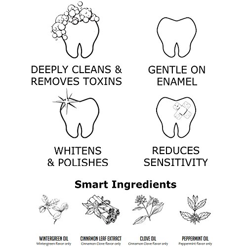 All-Natural: We use certified organic ingredients, the best activated coconut shell charcoal, and the highest grade calcium bentonite clay around (Living Clay). It contains no fluoride, no sodium lauryl sulfate, no triclosan, no preservatives, no glycerin, no foaming agents.