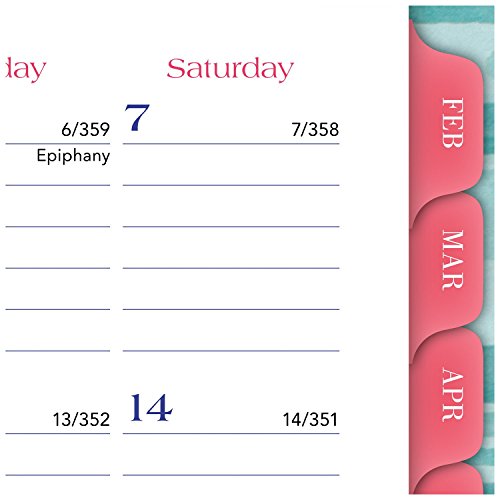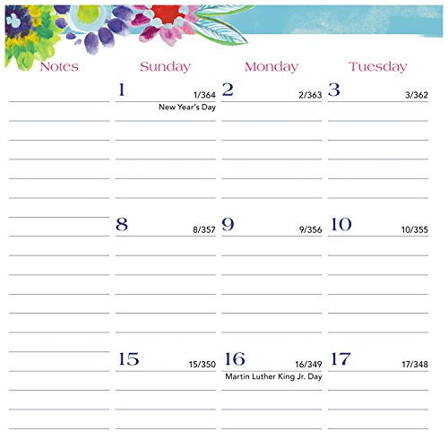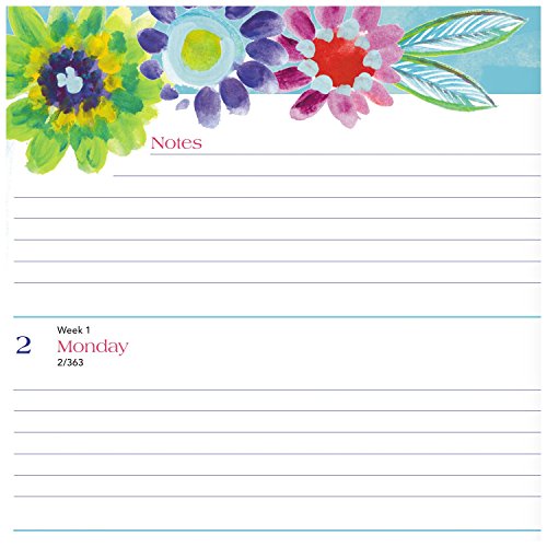 -. Feature : Painted flowers decorate the front and back of white Kathy Davis monthly planner, and shimmer under the light. Cover interior features a teal, striped design for an extra touch of style. / Weekly/monthly planner runs 13 months from January - January. Julian dates are included and holidays are marked. One month per two page spread includes ruled daily blocks to write in reminders and list planning details. / One week per two page spread includes an equal amount of ruled planning space for every day, Monday - Sunday. Months are tabbed for easy planner navigation, and clear poly pocket is included the front to stash loose sheets.