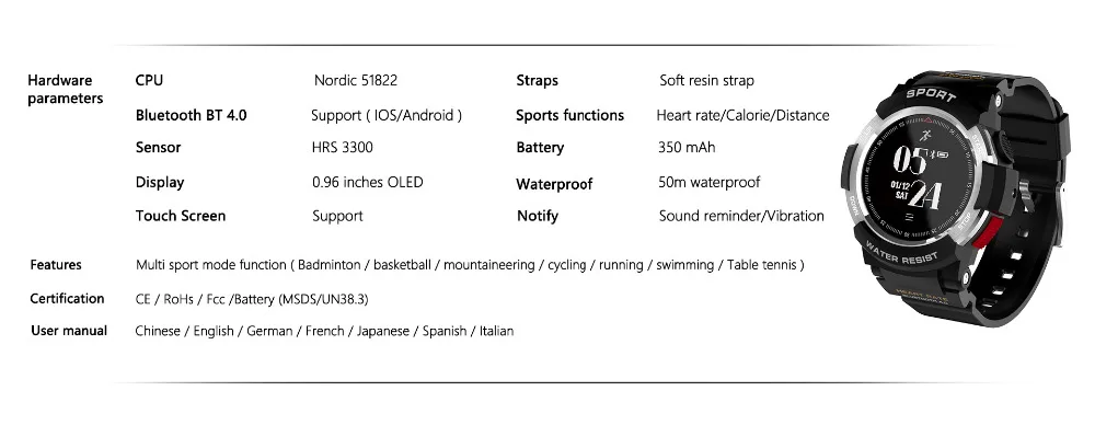 Function:Message Reminder,Passometer,Alarm Clock,Fitness Tracker,Call Reminder,Remote Control,Sleep Tracker,Heart Rate Tracker