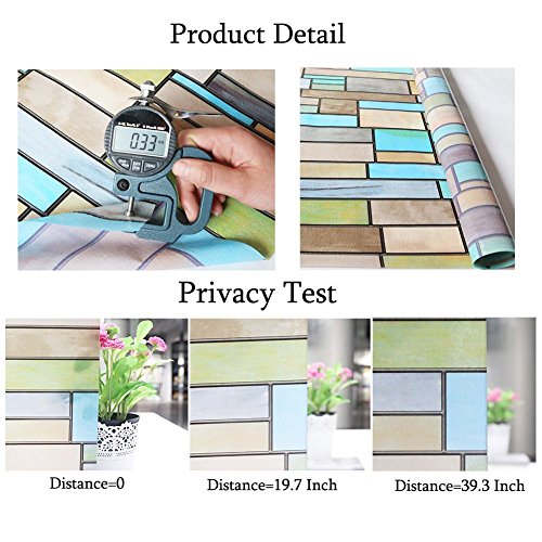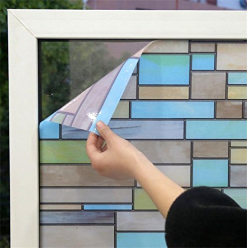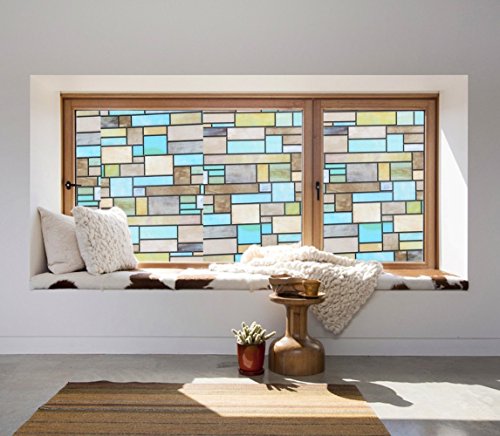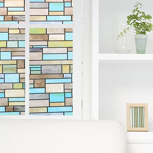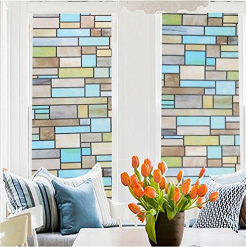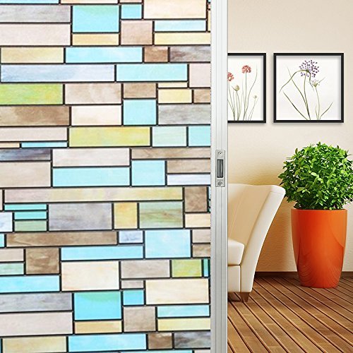 Niviy Privacy Window Covering Brick Stained Glass Window Film Waterproof Static Window Cling, 17.7" by 78.7" No Adhesive Glass Window Decor for Bathroom/Kids Room/Sliding Door, 1 Roll