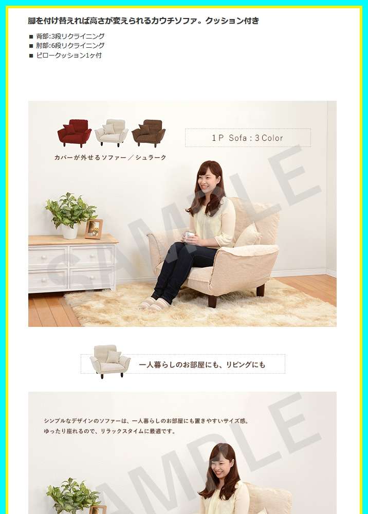 ●脚を付け替えれば高さが変えられるカウチソファ。クッション付き