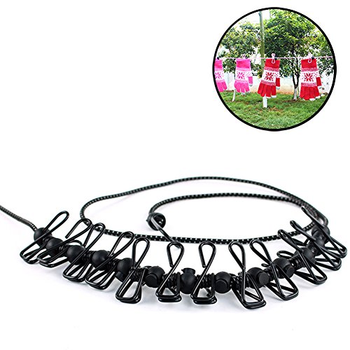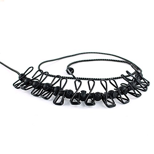 Travel Clothesline Travel Clothesline,Elastic Clothes line Rope Windproof Portable with 12pcs Clothespins for Indoor and Out door(Black)
