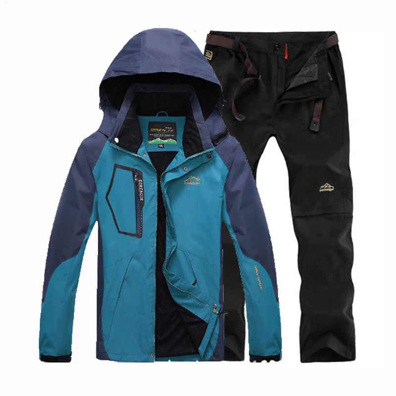 DIRENJIE Fishing Hiking Camping Trekking Climbing Men's Outdoor Jacket Fish Climb Travel Quick Dry Trousers Suit Plus Size Pants