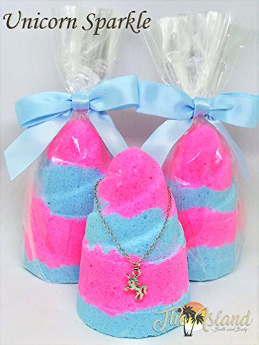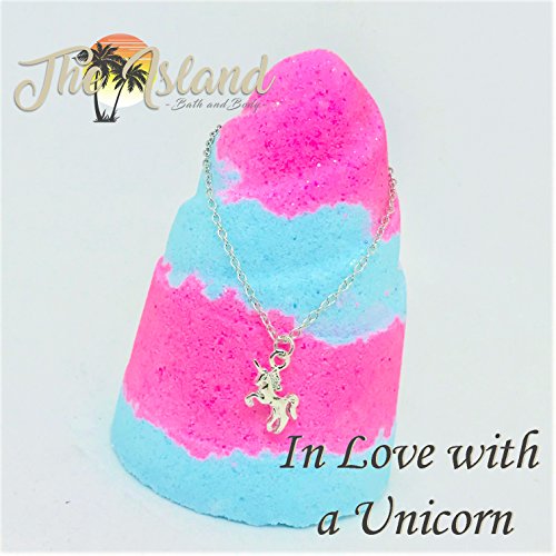 SURPRISE! This Bath Bomb has a lovely Unicorn Necklace inside that will float out in a secure capsule as the bath bomb dissolves.