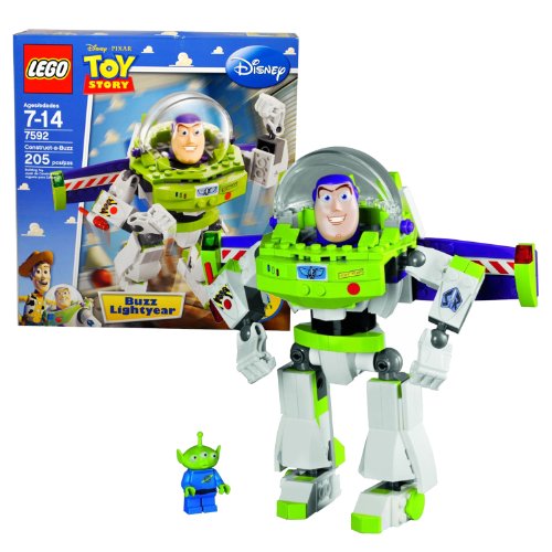 -. Title : L.E.G.O Year 2010 Disney Pixar Toy Story Series 7 Inch Tall Figure Set # 7592 - Construct-a-Buzz BUZZ LIGHTYEAR with Winged Jetpack, Closable Visor and Arm-Mounted, Flick-Launching Laser Cannon Plus Green Alien Minifigure (Total Pieces: 205)