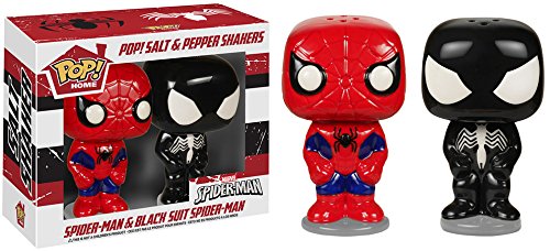 Spider-Man (Red/Blue & Black Suit): Funko POP! Home x Marvel Universe Salt & Pepper Shakers + 1 FREE Official Marvel Trading Card Bundle [56018]