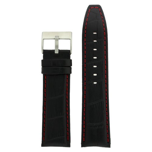 -. Title : Watch Band Genuine Calfskin Alligator Grain Black with Red Stitching Thick Padded 20mm