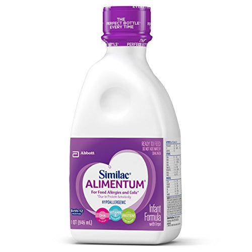-. Feature : Similac Alimentum is a nutritionally complete, hypoallergenic formula for infants with severe food allergies, including those with colic symp due to protein sensitivity / Contains a predigested milk protein that is broken down into tiny pieces to virtually eliminate allergic reactions in most babies who are allergic to cow's milk protein / Starts reducing excessive crying due to cow's milk protein sensitivity in most infants within 24 hours† (†based on a clinical study with Similac Alimentum Ready-to-Feed without DHA/ARA in a small group of infants experiencing colic symp due to cow's milk protein sensitivity. Data on File, Study / Includes DHA and ARA, special nutrients found in breast milk that are important for helping support brain and eye development