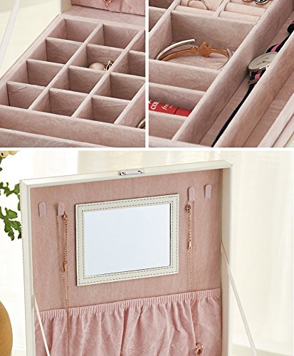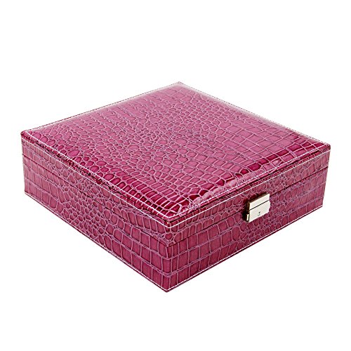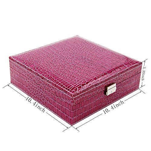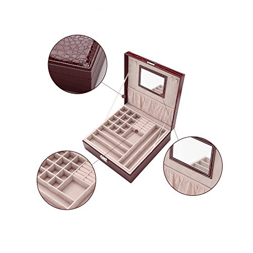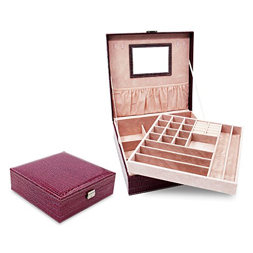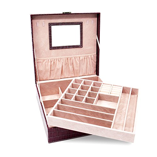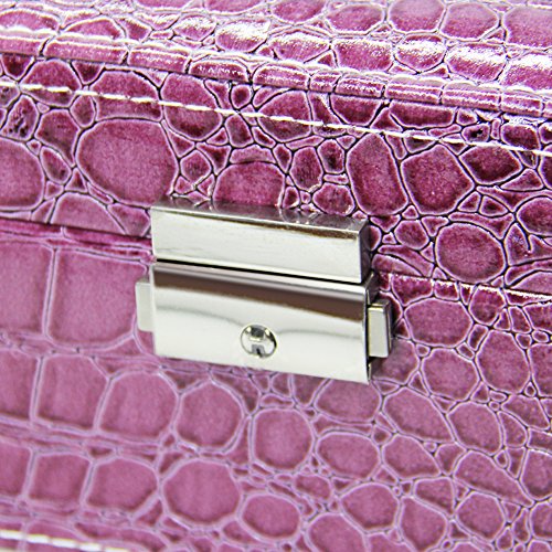 Two-Layer Lint Jewelry Box,PU Leather Jewelry Display Box,Crocodile Leather Pattern Jewelry Organizer Storage Case with Mirror and Lock. (Purple)