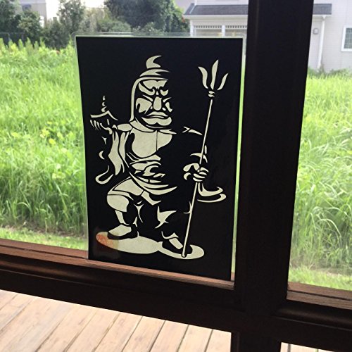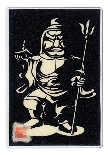 Cutout picture Japanese art collage KIRIE “Seven Lucky God · Bisyamonten” Seven Deities(Gods) of Good Fortune Made by Washi(Japanese paper) Basic color, 4” x 6”