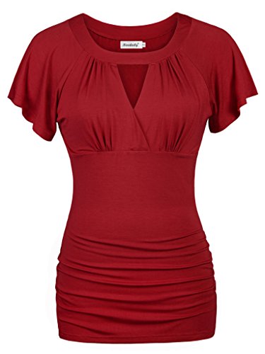 -. Feature : Women tops: 95% Rayon and 5% Spandex; lightweight and soft fabric with stretch / Special neckline is cross-front v neck but have round neck above. It is different from other v neck, the above round neck makes the cross-front not to show your chest / Raglan Sleeve shirt sleeve flattering, short sleeve tunic, pleated near the cross-front / Suit for any Occasion and season, math with leggings, jeans, skirt, pant and so on. Also can wear e with jacket or a blazer / Machine washable (Recommended Hand Wash), Hand Wash cold/No bleach/Lay Flat Dry