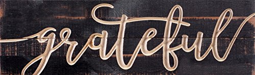 Grateful Script Design Distressed 24 x 7 Inch Solid Pine Wood Carved Calligraphy Wall Plaque Sign