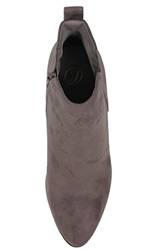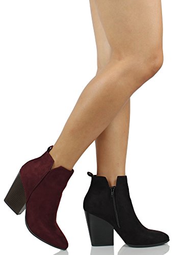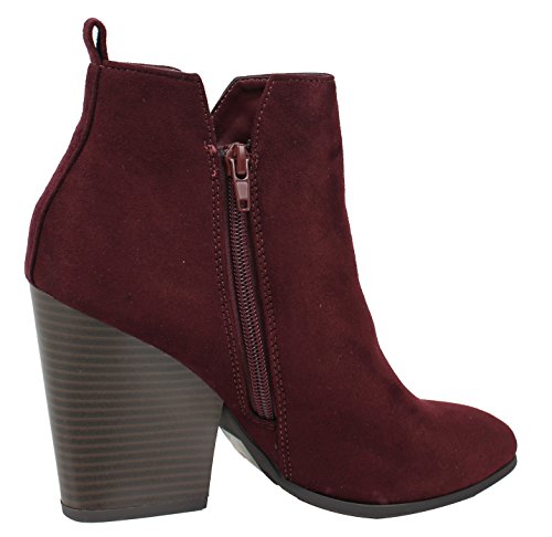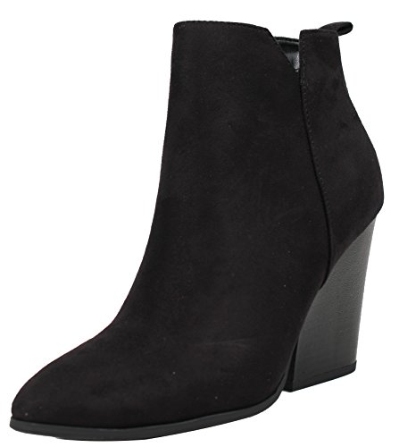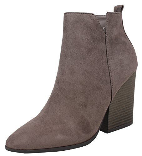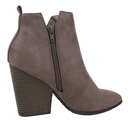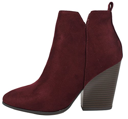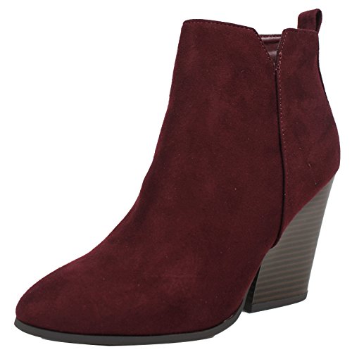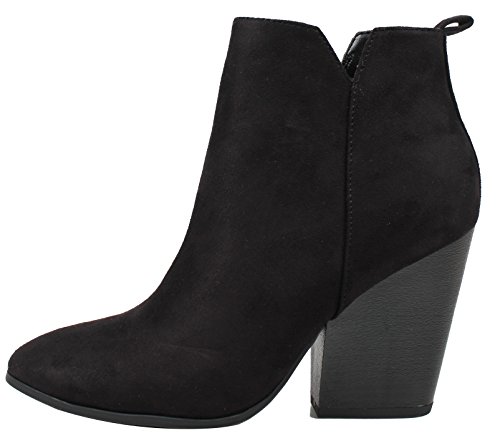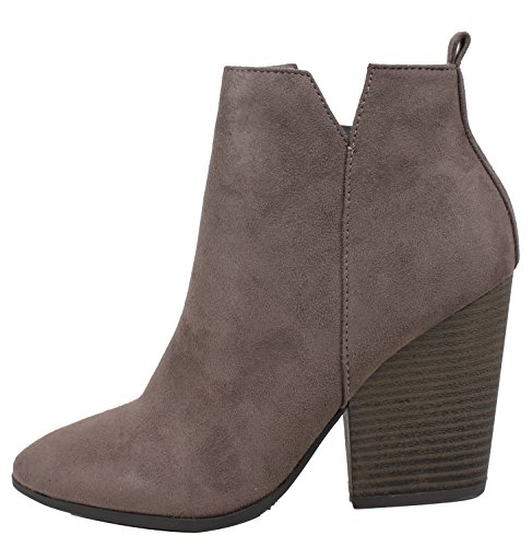 Delicious Women's Almond Toe Faux Suede V Side Cut Chunky Block Anke Boot