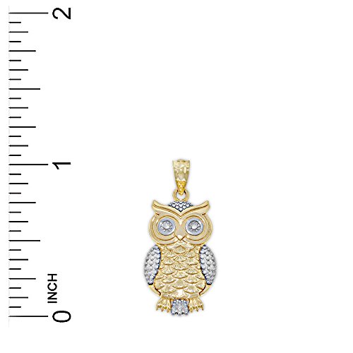 Express your love for this majestic bird of the night with this exquisite Two-toned 14K solid gold Owl Charm. Owls are a symbol of status, intelligence, protection and wealth. Carry this elegant piece with you everywhere your heart goes. Measures 1"L x 1/2"WFeature