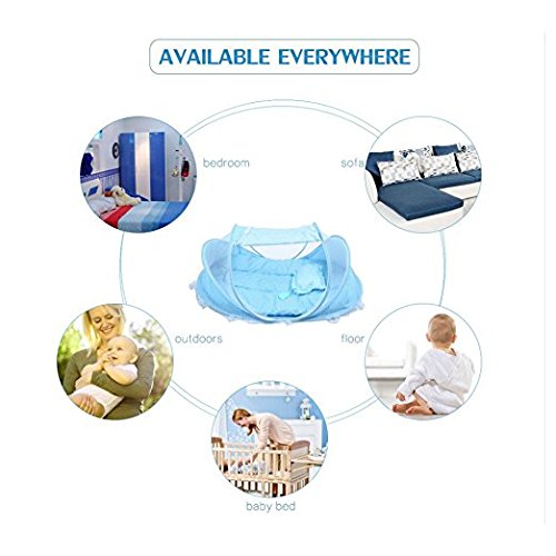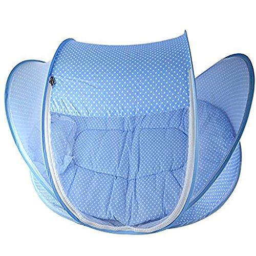 features: 1.High quality net,Environmental protection, beautiful, anti- mosquito,protect baby 2.Fine alignment work, quality assurance, 3.Thickening mosquito skeleton, strong,not easy broken and durable use 4.could use at outdoor with the mat in very hot summer weather 5. baby mosquito bed including mattress, pillow and mosquito net. It is better for 0-18 month baby. 6. It could keep away you baby from mosquito, flies and insects, giving your baby a safe and quiet place to sleeping. 7. It is Soft, comfortable and can prevent baby dropping down the floor, it also can prevent your baby from dust. Perfect for outdoors, it also can use for indoors. 8. The Material is Breathable mesh and Cotton which provides a virus free environment while keeps the air flowing and your baby dry. 9.This is a great tool for travel, keep your baby comfortable and safe. Basic information: 1.Commodity material: high-quality polyester net cotton cloth Packing: thick PVC bag color card 2.100% Brand New And High Quality 3.Protect infant baby from annoying mosquito, insect, flies, etc 4.With little mattress and pillow as shown Foldable and portable 5.Color: Blue,Pink 6.Size: 110*65*60cm(43.3*25.59*23.62 inch)(L*W*H) Note: Please allow slight 1-3cm difference due to manual measurement and a little color variation for different display setting Package Includes: 1 x Bed Net 1 x pillow 1 x mat