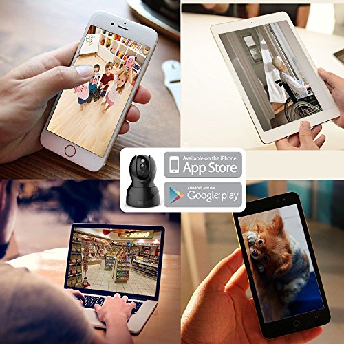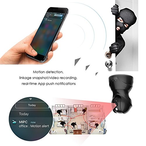 -. Feature : EASY TO PLACE & USE/ PLUG & PLAY SYSTEM: Plug & Play features very easy installation. Just plug in the power cable, download the MIPC app and set it up from your Android or iOS device. The Cam stand can go on a wall, tripod or shelf, or you can stick it to something magnetic. / STUNNING VIEWING EXPERIENCE: Adjustable Pan/Tilt with horizontal angle 350°,vertical angle 100° gives you a full view of any room. 1.0 megapixel lens capable of streaming video at 1280 x 720p HD quality. And built-in auto IR-CUT filter can provide clear and exquisite image with true color display. / 24 HOUR LIVE VIDEO STREAMING AND MOTION DETECTION: Continuous day/night surveillance is accomplished with 10 powerful IR-LEDs for night vision up to 32ft. Motion detect sensibility can be adjusted yourself, when monitor is detected or alarm is triggered, instant email notification will be sent. / TWO-WAY AUDIO:The built-in microphone and speaker allow voice communicating between the APP and camera sides. You can keep in touch with your baby anytime, whether you want to see his face, hear his voice or let him hear yours. This baby monitor also have Intelligent Motion Alerts feature, you can receive Message Alerts/Snapshots from Mobile App to ensure well being. / MULTI-PLATFORM VIEW: Free apps for Android and iOS, the live video footage can be remote view via iphone/ ipad/ Android phone/ tablet/ PC, keep an eye on your loves and belongs anywhere anytime