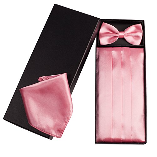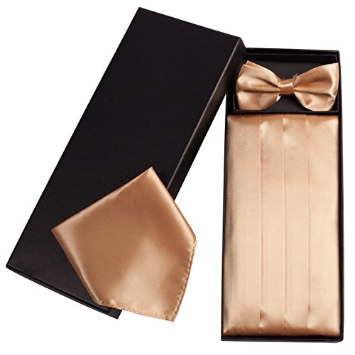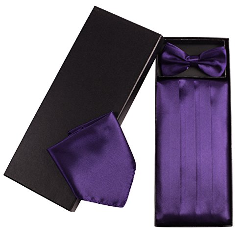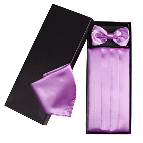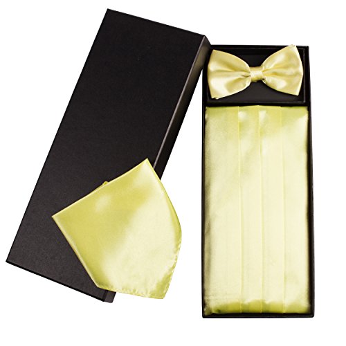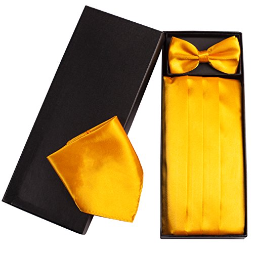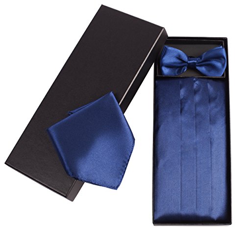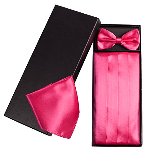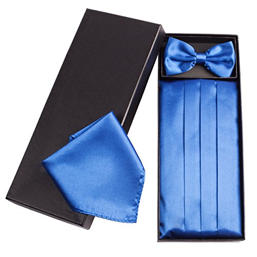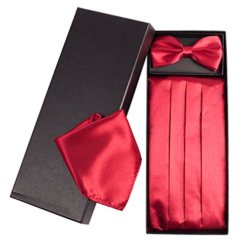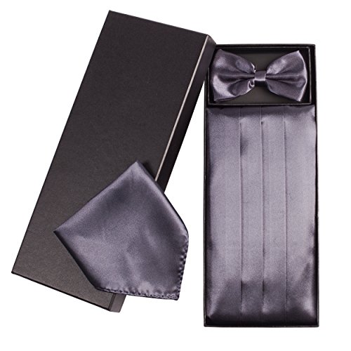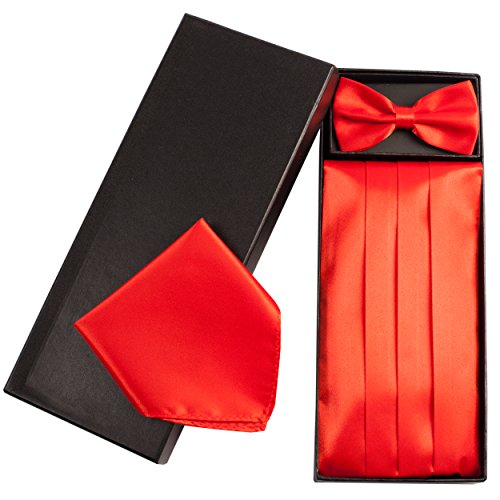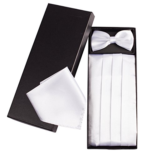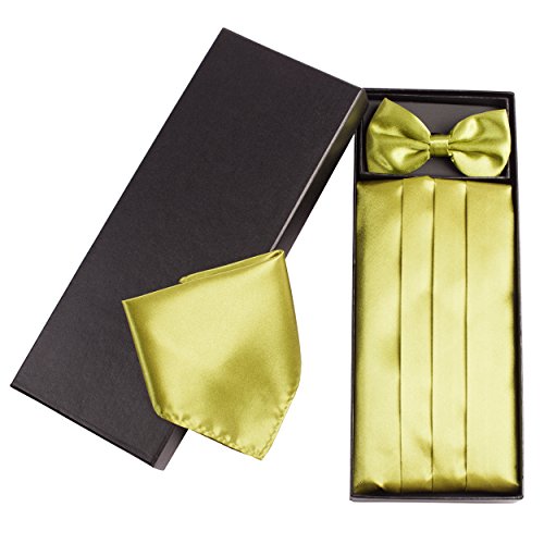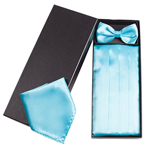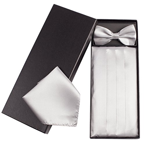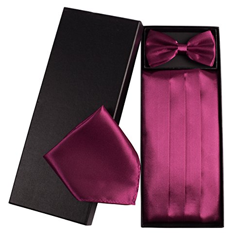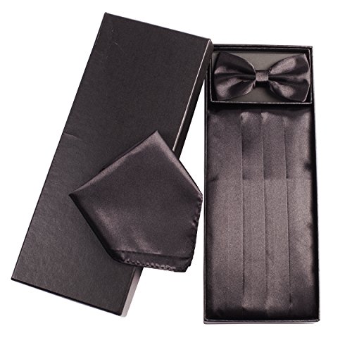 | (Vivente Vivo)/Accessories/Ties/DIRECT FROM USA/Mens Formal Cummerbund Set Bow Tie Pocket Square Classic Formal Gift Set in Multiple Colour |
