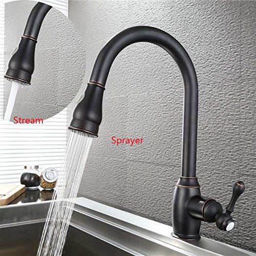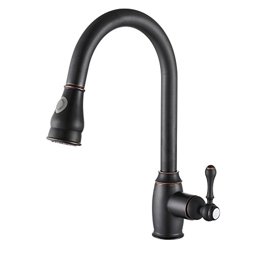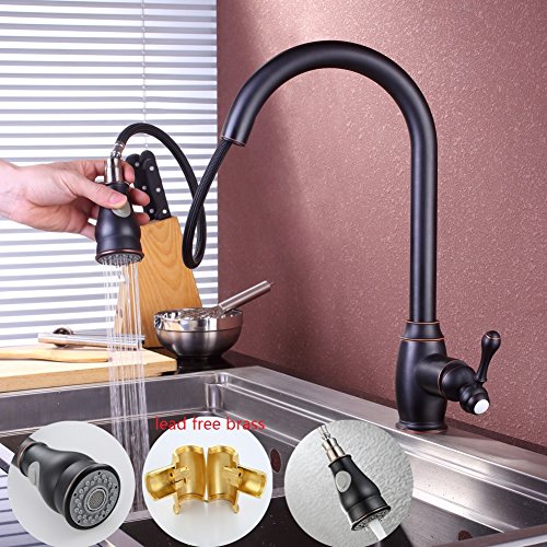 SonTiy Lead Free Kitchen Faucet With Pull Down Sprayer Best Antique Brass Kitchen Sink Faucet High Arc Single Handle Pull Out Kitchen Faucet Oil Rubbed Bronze