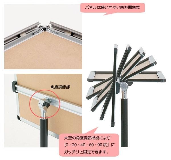 フロアサインやメニュースタンドなど幅広くご使用いただけるグリップスタンドです。5段階の角度調節が可能。高級感のある四角ベースを使用しています。 |